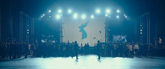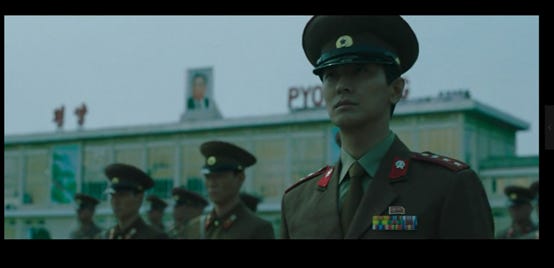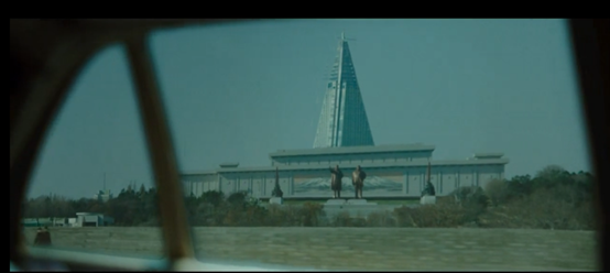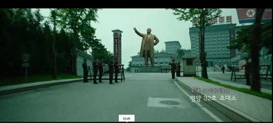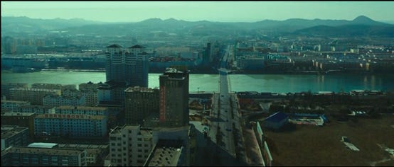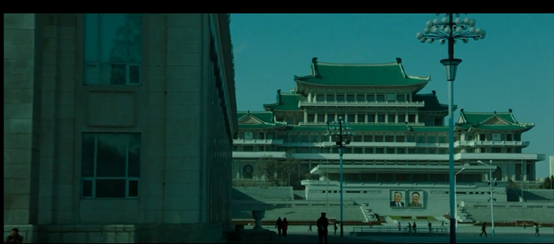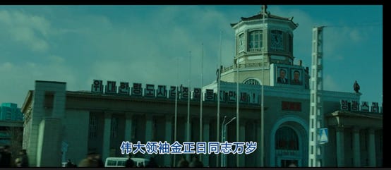 随后可以看到一系列朝鲜首都平壤的画面,由于朝鲜不可能开放让韩国团队去拍摄,所以这些画面几乎都是CG效果,只不过都是符合朝鲜真实情况的。中国当然也绝会批准韩国来华拍摄这类题材的电影,所以电影中关于中国的画面基本都在台湾拍摄完成。