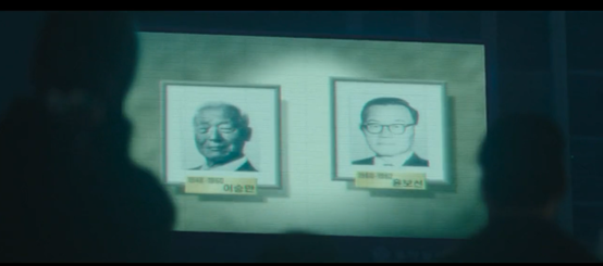 下面有必要介绍下关于韩国政坛的基本历史。电视画面给出了历代韩国总统的照片。左边是韩国第一任总统李承晚,他常年实行独裁专政,因贿选政治舞弊而引发了“四一九革命“最终下台,离开韩国前往美国,最终客死他乡。右边是韩国的第二任总统尹潽善,此人在位时间很短只有两年,所以并没有什么存在感。