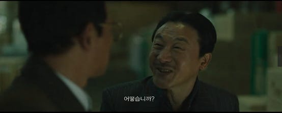 不过最重要的是需要进入宁边周边地区去考察朝鲜核设施的具体情况,韩国安企部通过金长鹤教授,在宁边原子能研究中心安排了一个线人,只要“黑金星”能进入核反应堆10公里的地带,线人就能给他传递资料。从后面的剧情来看,协助黑金星联系内应的人就是金铭秀社长(见下图),也就是李处长身边的那个人,当初看到劳力士手表非常激动,说了一大堆恭维的话,他也被崔室长发展成了内应。